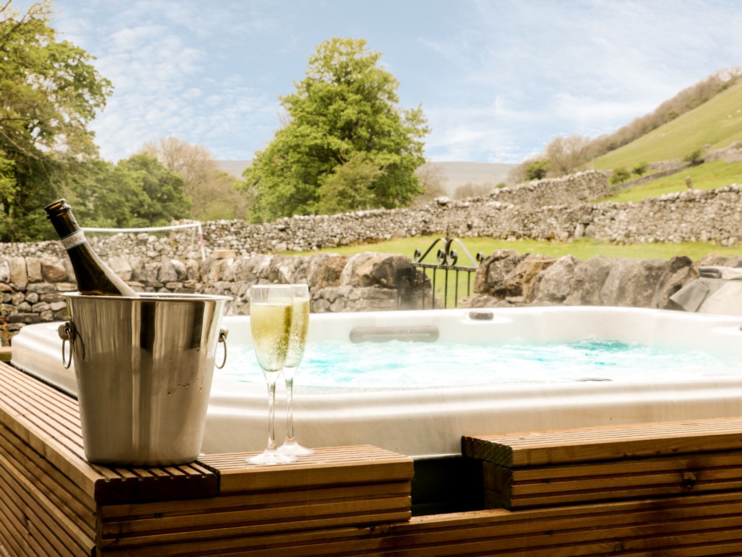 Hilltop House has wonderful views over a secluded valley close to Kettlewell with a large garden, hot tub and accommodation for up to twelve people.